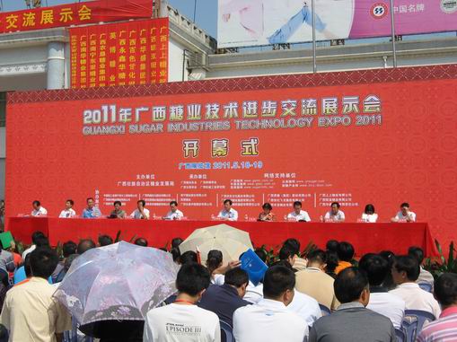 2011年5月18-19日,廣西首屆糖業(yè)技術(shù)進(jìn)步交流展示會(簡稱“糖業(yè)技術(shù)展示會”)在南寧舉行。該展示會由廣西壯族自治區(qū)糖業(yè)發(fā)展局主辦,廣西糖業(yè)協(xié)會、廣西制糖學(xué)會、廣西甘蔗學(xué)會和廣西機(jī)械工業(yè)研究院共同承辦。參加糖業(yè)技術(shù)展示會的單位有:廣西壯族自治區(qū)工信委、農(nóng)業(yè)廳、農(nóng)機(jī)局等區(qū)直單位;廣西區(qū)內(nèi)主產(chǎn)糖市糖業(yè)發(fā)展局(糖辦);廣西區(qū)內(nèi)制糖企業(yè);國內(nèi)外參展企業(yè);中國糖業(yè)協(xié)會和廣東、云南、海南三省糖業(yè)協(xié)會等。到會領(lǐng)導(dǎo)主要有中國農(nóng)業(yè)科學(xué)院甘蔗研究中心主任李楊瑞、中國糖業(yè)協(xié)會副理事長兼秘書長閆衛(wèi)民、廣西糖業(yè)發(fā)展局副局長劉全躍、張魯賓等。會議規(guī)模500多人,是廣西糖業(yè)發(fā)展上規(guī)模最大的一次盛會。